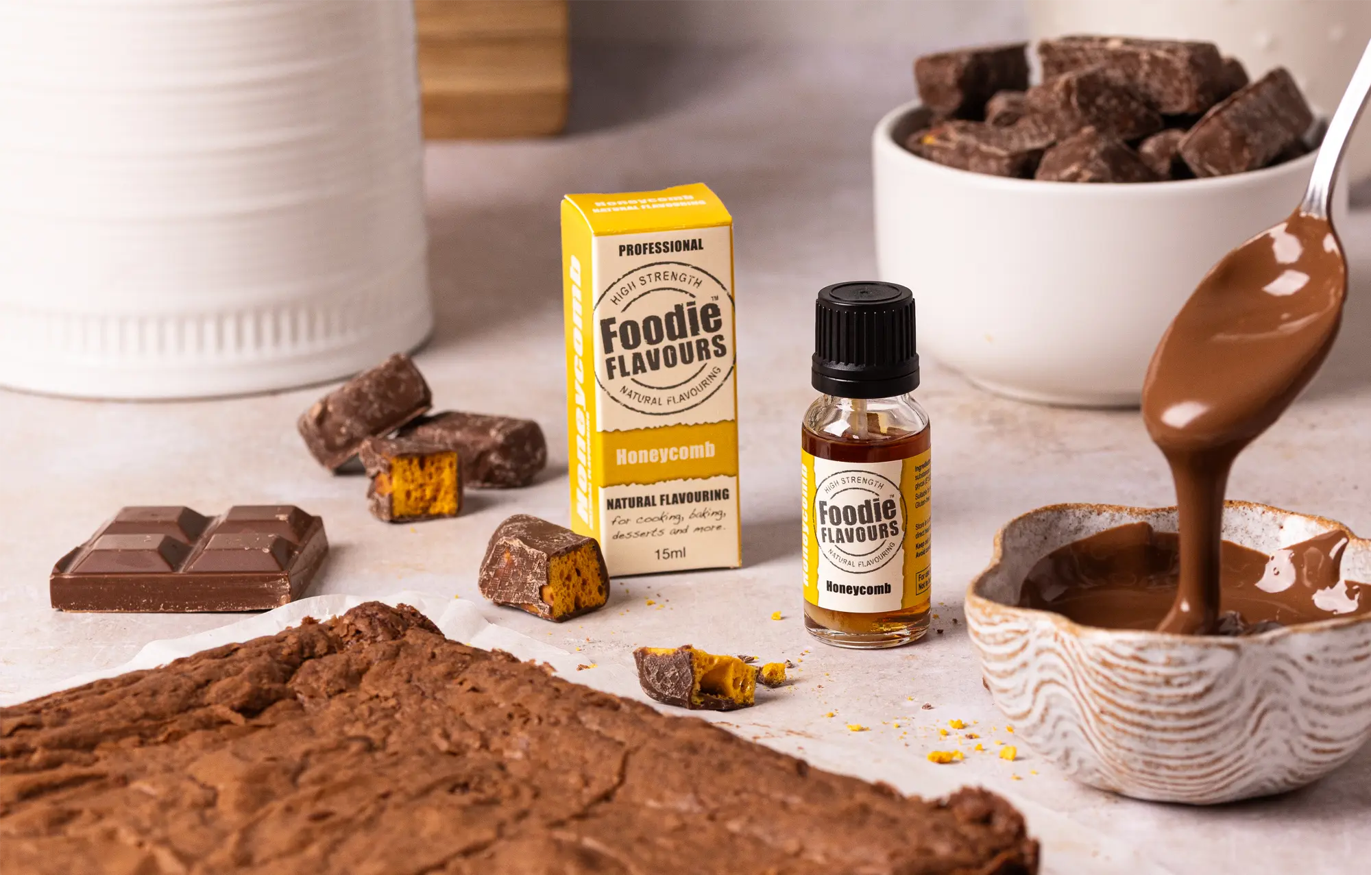 High strength Honeycomb Natural Flavouring - Crunchy, sweet caramel with honey notes. Transform your bakes, milkshakes, ice creams, and desserts.